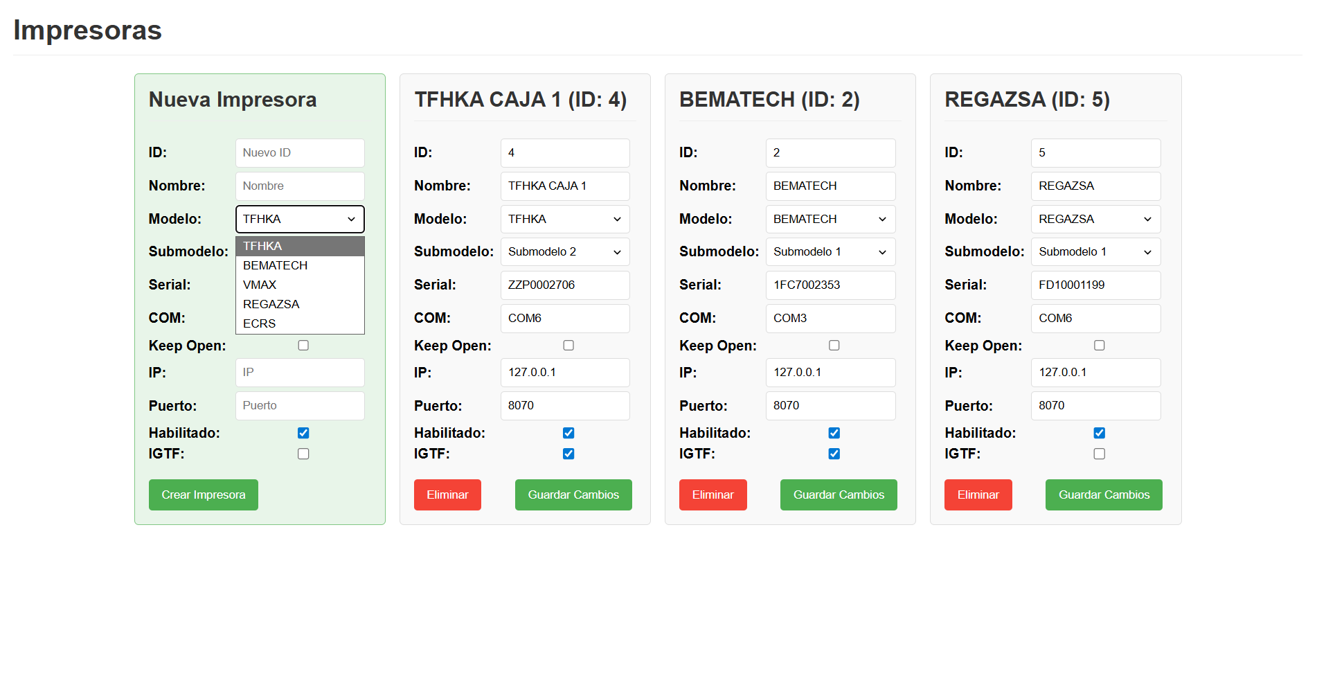 La Solución: Capa de abstracción (API REST) y panel de configuración que unifica la comunicación con diversos modelos de impresoras, simplificando la emisión segura de documentos legales.